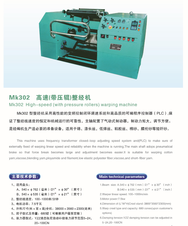 MK302 高速(带压辊)整经机